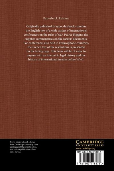 Originally published in 1909, this book contains the English text of a wide variety of international conferences on the rules of war. Pearce Higgins also supplies commentaries on the various documents. For conferences also held in Francophone countries, the French text of the resolutions is presented on the facing page. This book will be of value to anyone with an interest in legal history and the history of international treaties before WWI.
