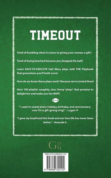 Guys: are you tired of missing out on opportunities to score? (And we're not just talking about extra points.) The Hail Mary Playbook lists over 100 playful, naughty, nice, funny "plays" that'll make you the MVP in your woman's life! This official gift-giving guide is packed with easy-to-execute and tested ideas to spice up your relationship. From first date plays to proposal plays - they're all in here. Never again get benched because you dropped the ball. Tell us if you've felt this before .. it's a big day. Whether that's a holiday, or birthday, you know that you're being counted on to deliver. You've been trying to think of something new, something special to get your Girlfriend or wife .. but you're coming up empty. Flowers? You've already done that. Jewelry? That was your last gift. Chocolate? Where do you begin, and is it enough? Remember the last time you tried to get her something special? Remember the disappointed look? Here's how the playbook works: 1st, pick your gift. 2nd, pick your play. 3rd, run your play and .. T O U C H D O W N ! Get in the game with specially created Chapters such as: Jewelry Gifts Travel Gifts Gifts under $100 Gifts above $100 "Sorry I f**ked up" gifts Proposals ¿¿¿¿¿¿¿You can't score if you don't get on the field, so what are you waiting for?