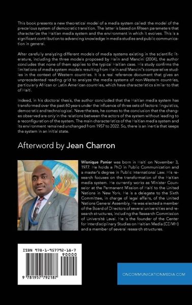 This book presents a new theoretical model of a media system called: the model of the precarious system of democratic transition. The latter is based on fifteen parameters that characterize the Haitian media system and the environment in which it evolves. This is a significant contribution to advancing knowledge in media studies and public communication in general. After carefully analyzing different models of media systems existing in the scientific literature, including the three models proposed by Halin and Mancini (2004), the author concludes that none of them applies to the typical Haitian case. His study confirms the limitations of media system models resulting from Halin and Mancini's comparative studies in the context of Western countries. It is a real reference document that gives an unprecedented reading grid to analyze the media systems of non-Western countries, particularly African or Latin American countries, which have characteristics similar to that of Haiti. Indeed, in his doctoral thesis, the author concluded that the Haitian media system has transformed over the past 60 years under the influence of three sets of factors: linguistics, democratic and technological. Nevertheless, he comes to the conclusion that the changes observed are only in the relations between the actors of the system without leading to a reconfiguration of the system. The main characteristics of the Haitian media system and its environment remained unchanged from 1957 to 2022. So, there is an inertia that keeps the system in an initial state.