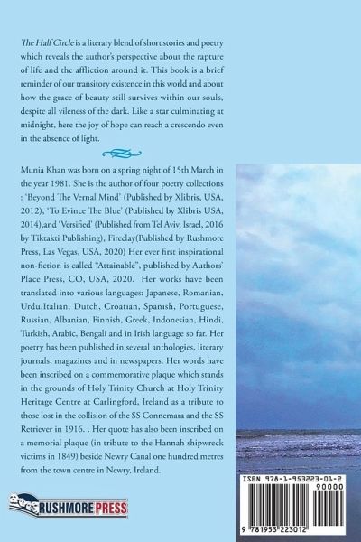 Munia Khan was born on a spring night of 15th March in the year 1981. She is the author of four poetry collections : 'Beyond The Vernal Mind' (Published by Xlibris, USA, 2012), 'To Evince The Blue' (Published by Xlibris USA, 2014),and 'Versified' (Published from Tel Aviv, Israel, 2016 by Tiktakti Publishing), Fireclay(Published by Rushmore Press, Las Vegas, USA, 2020) Her ever first inspirational non-fiction is called "Attainable", published by Authors' Place Press, CO, USA, 2020. Her works have been translated into various languages: Japanese, Romanian, Urdu,Italian, Dutch, Croatian, Spanish, Portuguese, Russian, Albanian, Finnish, Greek, Indonesian, Hindi, Turkish, Arabic, Bengali and in Irish language so far. Her poetry has been published in several anthologies, literary journals, magazines and in newspapers. Her words have been inscribed on a commemorative plaque which stands in the grounds of Holy Trinity Church at Holy Trinity Heritage Centre at Carlingford, Ireland as a tribute to those lost in the collision of the SS Connemara and the SS Retriever in 1916. . Her quote has also been inscribed on a memorial plaque (in tribute to the Hannah shipwreck victims in 1849) beside Newry Canal one hundred metres from the town centre in Newry, Ireland.