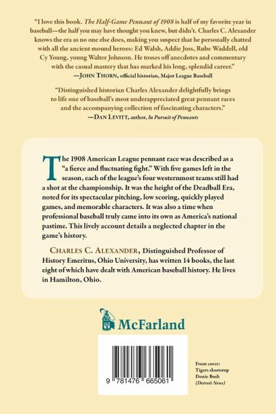 The 1908 American League pennant race was described as a "a fierce and fluctuating fight." With five games left in the season, each of the league's four westernmost teams still had a shot at the championship. It was the height of the Deadball Era, noted for its spectacular pitching, low scoring, quickly played games, and memorable characters. It was also a time when professional baseball truly came into its own as America's national pastime. This lively account details a neglected chapter in the game's history.