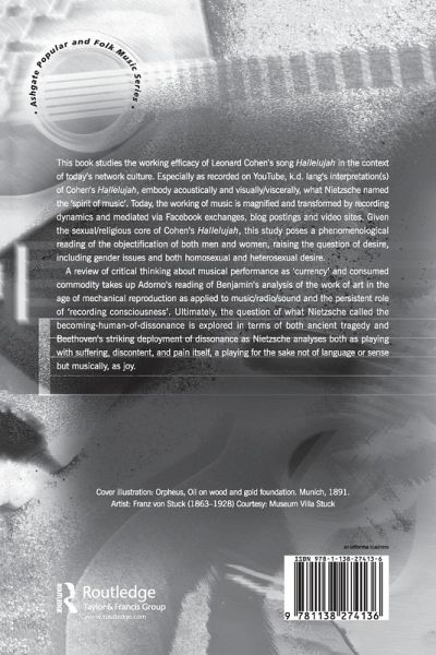 This book studies the working efficacy of Leonard Cohen's song Hallelujah in the context of today's network culture. Especially as recorded on YouTube, k.d. lang's interpretation(s) of Cohen's Hallelujah, embody acoustically and visually/viscerally, what Nietzsche named the 'spirit of music'. Today, the working of music is magnified and transformed by recording dynamics and mediated via Facebook exchanges, blog postings and video sites. Given the sexual/religious core of Cohen's Hallelujah, this study poses a phenomenological reading of the objectification of both men and women, raising the question of desire, including gender issues and both homosexual and heterosexual desire. A review of critical thinking about musical performance as 'currency' and consumed commodity takes up Adorno's reading of Benjamin's analysis of the work of art in the age of mechanical reproduction as applied to music/radio/sound and the persistent role of 'recording consciousness'. Ultimately, the question of what Nietzsche called the becoming-human-of-dissonance is explored in terms of both ancient tragedy and Beethoven's striking deployment of dissonance as Nietzsche analyses both as playing with suffering, discontent, and pain itself, a playing for the sake not of language or sense but musically, as joy.