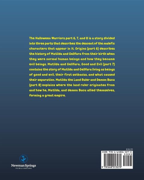 The Halloween Warriors part 6, 7, and 8 is a story divided into three parts that describes the descent of the malefic characters that appear in it. Origins (part 6) describes the history of Matilda and Gellfara from their birth when they were normal human beings and how they became evil beings. Matilda and Gellfara, Good and Evil (part 7) contains the story of Matilda and Gellfara living as beings of good and evil, their first setbacks, and what caused their separation. Matilda the Land Ruler and Demon Bucu (part 8) explains where the land ruler originates from and how he, Matilda, and demon Bucu allied themselves, forming a great empire.