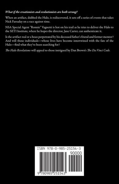 What if the creationists and evolutionists are both wrong? When an artifact, dubbed the Halo, is rediscovered, it sets off a series of events that takes Nick Farraday on a race against time. NSA Special Agent "Ronnie" Vagnetti is hot on his trail as he tries to deliver the Halo to the SETI Institute, where he hopes the director, Jane Carter, can authenticate it. Is the artifact real, or a hoax perpetrated by his deceased father's friend and former mentor? And will those individuals-whose lives have become intertwined with the fate of the Halo-find what they've been searching for? The Halo Revelations will appeal to those intrigued by Dan Brown's The Da Vinci Code.