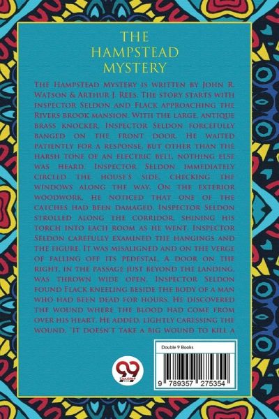 The Hampstead Mystery is written by John R. Watson & Arthur J. Rees. The story starts with inspector Seldon and Flack approaching the Rivers brook mansion. With the large, antique brass knocker, Inspector Seldon forcefully banged on the front door. He waited patiently for a response, but other than the harsh tone of an electric bell, nothing else was heard. Inspector Seldon immediately circled the house's side, checking the windows along the way. On the exterior woodwork, he noticed that one of the catches had been damaged. Inspector Seldon strolled along the corridor, shining his torch into each room as he went. Inspector Seldon carefully examined the hangings and the figure. It was misaligned and on the verge of falling off its pedestal. A door on the right, in the passage just beyond the landing, was thrown wide open. Inspector Seldon found Flack kneeling beside the body of a man who had been dead for hours. He discovered the wound where the blood had come from over his heart. He added, lightly caressing the wound, "It doesn't take a big wound to kill a guy.