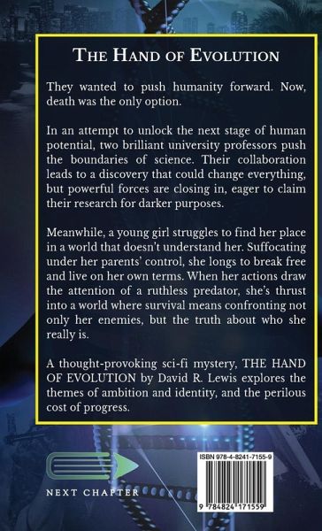 They wanted to push humanity forward. Now, death was the only option. In an attempt to unlock the next stage of human potential, two brilliant university professors push the boundaries of science. Their collaboration leads to a discovery that could change everything, but powerful forces are closing in, eager to claim their research for darker purposes. Meanwhile, a young girl struggles to find her place in a world that doesn't understand her. Suffocating under her parents' control, she longs to break free and live on her own terms. When her actions draw the attention of a ruthless predator, she's thrust into a world where survival means confronting not only her enemies, but the truth about who she really is. A thought-provoking sci-fi mystery, THE HAND OF EVOLUTION by David R. Lewis explores the themes of ambition and identity, and the perilous cost of progress.