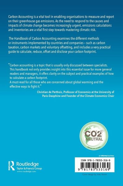 This book examines the various methods of carbon accounting used across the world. It aims to educate the reader on relevant concepts, as well as the historical context of the discipline. Assessing the evolution of carbon accounting since the Rio Conference in 1992 to the latest developments, this is an accessible and up-to-date guide. This book examines the various methods of carbon accounting inventory used across the world. It aims to educate the reader on relevant concepts, as well as the historical context of the discipline. Assessing the evolution of carbon accounting since the Rio Conference in 1992 to the latest developments, this is an accessible and up-to-date guide.