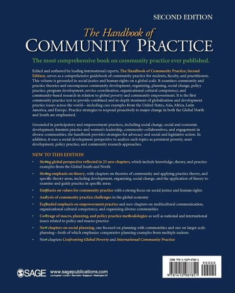 Introduction- Communities: Contexts and Challenges for the 21st Century - Marie Weil, Mary L. Ohmer, Michael Reisch History and Context for Community Practice - William Brueggeman Community Practice Challenges in the Global Economy - Michael Reisch Social Justice, Human Rights, Values, and Community Practice - Michael Reisch, Jim Ife, Marie Weil Theories of Community - Robert J. Chaskin Applying Practice Theories in Community Work - Marie Weil, Mary L. Ohmer Evolution, Models and the Changing Context of Community Practice - Marie Weil, Dorothy N. Gamble, Mary L. Ohmer Development Theories and Community Development Practice: Trajectory of Changes - Lakshmi Lingam Sustainable Community Development - Dorothy Gamble, Marie D. Hoff The Practice of Community Organizing: Comparing and Contrasting Conflict and Consensus Approaches - Mary L. Ohmer, Fred Brooks, III New Theory for New Constituencies: Contemporary Organizing in Communities of Color - Rinku Sen Social Planning with Communities: Theory & Practice - Marie Weil Larger Scale Social Planning; Planning for Services, Communities and Regions - Jon Simon Sager Participatory Methods in Community Practice - Dorothy N. Gamble Political, Social and Legislative Action - Jacqueline Mondros Radical Community Organizing - Michael Reisch Coalitions, Collaborations and Partnerships: Interorganizational Approaches to Social Change - Terry Mizrahi, Beth Rosenthal, Jan Ivery Eight Models of Policy Practice: Local, State, National, and International Arenas - Bruce Jansson, Gretchen Heidemann, Jacquelyn McCroskey, Ralph Fertig Cultural Competency: Organizations and Diverse Populations - Patricia St. Onge Principles, Skills, and Practice Strategies for Promoting Multicultural Communication and Collaboration - Lorraine Gutierrez, Edith Lewis, Adrienne Dessel, Mike Spencer Rural Community Practice: Organizing, Planning, and Development - Iris Carlton-LaNey, Yolanda Burwell, Craig White Renewing Social Work