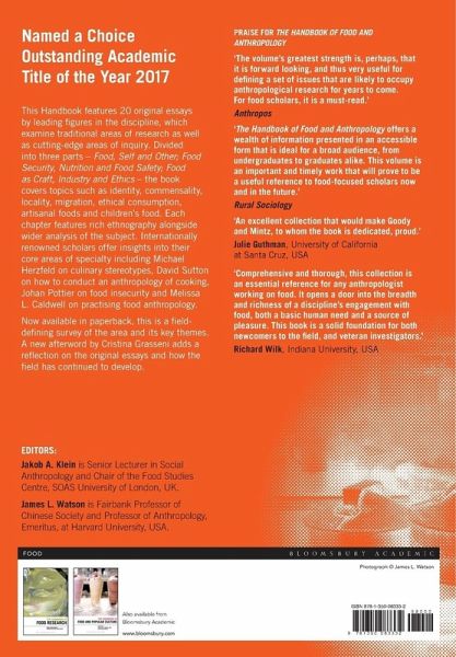Named a Choice Outstanding Academic Title of the Year 2017 This Handbook features 20 original essays by leading figures in the discipline, which examine traditional areas of research as well as cutting-edge areas of inquiry. Divided into three parts - Food, Self and Other; Food Security, Nutrition and Food Safety; Food as Craft, Industry and Ethics - the book covers topics such as identity, commensality, locality, migration, ethical consumption, artisanal foods and children's food. Each chapter features rich ethnography alongside wider analysis of the subject. Internationally renowned scholars offer insights into their core areas of specialty including Michael Herzfeld on culinary stereotypes, David Sutton on how to conduct an anthropology of cooking, Johan Pottier on food insecurity and Melissa L. Caldwell on practising food anthropology. Now available in paperback, this is a field-defining survey of the area and its key themes. A new afterword by Cristina Grasseni adds a reflection on the original essays and how the field has continued to develop.