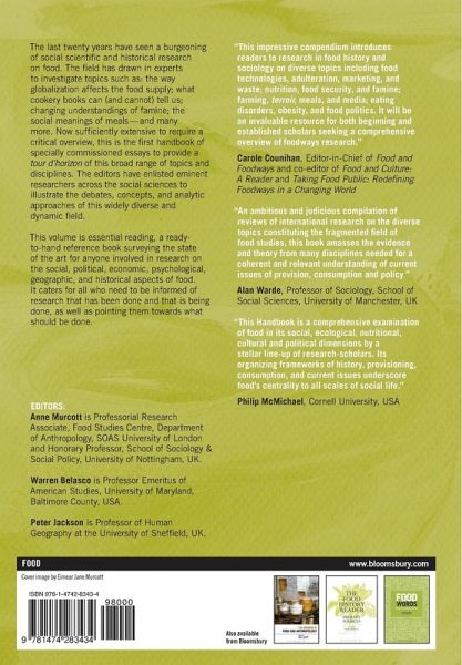 The last 20 years have seen a burgeoning of social scientific and historical research on food. The field has drawn in experts to investigate topics such as: the way globalisation affects the food supply; what cookery books can (and cannot) tell us; changing understandings of famine; the social meanings of meals - and many more. Now sufficiently extensive to require a critical overview, this is the first handbook of specially commissioned essays to provide a tour d'horizon of this broad range of topics and disciplines. The editors have enlisted eminent researchers across the social sciences to illustrate the debates, concepts and analytic approaches of this widely diverse and dynamic field. This volume will be essential reading, a ready-to-hand reference book surveying the state of the art for anyone involved in, and actively concerned about research on the social, political, economic, psychological, geographic and historical aspects of food. It will cater for all who need to be informed of research that has been done and that is being done.