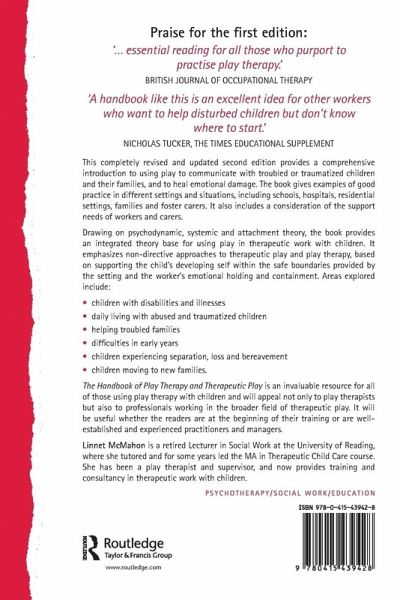 The Handbook of Play Therapy and TherapeuticPlay is an invaluable resource for all of those using play therapy with children and will appeal not only to play therapists but also to professionals working in the broader field of therapeutic play. It will be useful whether the readers are at the beginning of their training or are well-established and experienced practitioners and managers.