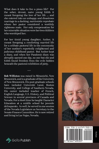 What does it take to live a pious life? For the sober, devout, naive young Edith it meant foregoing the love of her life ... and she entered into an unhappy and disastrous marriage to a dashing, narcissistic reprobate whom her pastor considered a worthily righteous mate. Her only compensation for her miserable situation were her two children who worshiped her. For her timid young daughter, Amber, it meant foregoing a comforting married life for a celibate pastoral life in the community of her mother's reportedly enlightened and judicious childhood pastor. But Amber kept a diary, and when her Pandora's diary was abruptly opened one day, no one but she and Edith found freedom from the evils hidden beneath the pastoral exhibition of piety.