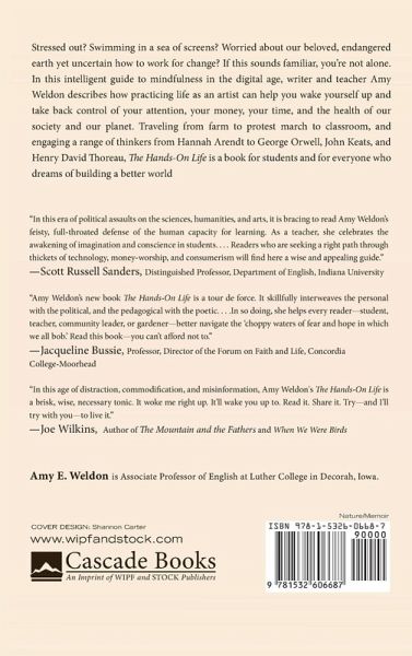 Stressed out? Swimming in a sea of screens? Worried about our beloved, endangered earth yet uncertain how to work for change? If this sounds familiar, you're not alone. In this intelligent guide to mindfulness in the digital age, writer and teacher Amy Weldon describes how practicing life as an artist can help you wake yourself up and take back control of your attention, your money, your time, and the health of our society and our planet. Traveling from farm to protest march to classroom, and engaging a range of thinkers from Hannah Arendt to George Orwell, John Keats, and Henry David Thoreau, The Hands-On Life is a book for students and for everyone who dreams of building a better world.