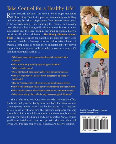 Whether young, old, type 1, type 2, gestational, newly diagnosed, long-time sufferer, caretaker, or loved one, millions of people are afflicted and affected by diabetes. From scientific explanations of the effects to monitoring, maintaining, exercising, and eating right, The Handy Diabetes Answer Book provides detailed information on the research and science on the disease, as well as advice on coping with the burden. An easy-to-use and informative reference, it covers the risks, differences at various life stages, demonstrates how to cope-and live well-through food, exercise and lifestyle choices, and more through well-researched answers to over 950 common questions, such as What were some early common treatments for patients with diabetes? What are some eating challenges for an older person? What are the early warning signs? How do "energy drinks" affect a person's blood glucose levels? What recent study tried to find a way to reverse type 2 diabetes?