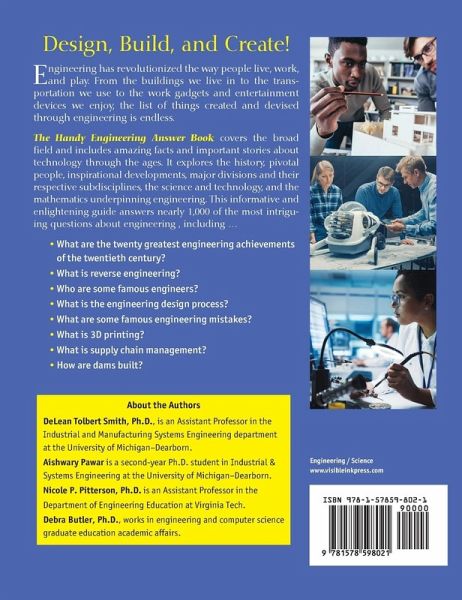 A handy resource on the fundamental facts about engineering for both engineers and non-engineers alike, whether you are exploring engineering for the first time, already have a strong background, or fall anywhere in between. Engineering impacts every aspect of our lives. Bridges,buildings, buses, electrical grids, computers, televisions, refrigerators, vacuum cleaners, and virtually any everyday household item needs to be engineered to function properly. Fundamentally, engineering is about identifying a need and developing solutions that meet that need. Throughout history, engineering ideas and innovative feats have provided solutions to many challenges faced by civilizations. From the Great Wall of China to NASA's space program, The Handy Engineering Answer Book covers the history of the field, details the lives of key figures, introduces the tools engineers use to solve problems, and provides fun facts and answers to a thousand important and interesting questions, such as … What is the difference between science and engineering? What do engineers do? What are some famous engineering mistakes or failures? What is reverse engineering? What is a prototype? What types of jobs do electrical engineers do? How does a car battery work? What are the major job responsibilities of a HVAC engineer? What is a Powertrain? What is Bernoulli's principle? What are the Laws of Thermodynamics? What’s the difference between 2-stroke and 4-stroke engines? What is stress and strain? What is the difference between torque and power? What is automation? What is quality assurance? What is meant by outsourcing? What are the responsibilities of a construction manager? What are the types of road construction that are both durable and cost-effective? Which materials are used to build a cruise ship? What are some design elements that help structures withstand earthquakes? How does a civil engineer design water slides for theme parks? Who was W. Edwards Deming? What is ergonomics? What is biomedical engineering? Who is Grace Hopper? What is debugging? What is the difference between a web developer and a website designer? Was Leonardo da Vinci an aerospace engineer? Where do chemical engineers work? How much energy does the world use? What are the major challenges addressed by environmental engineers? What is humanitarian engineering? What is acoustical engineering? What are the required skills for fire engineers? What are the advantages and disadvantages of nanotechnology? With more than 140 photos and graphics, this fascinating tome is richly illustrated. Its helpful bibliography and extensive index add to its usefulness. Whether using science and math or building prototypes for testing or the development of various subdisciplines, The Handy Engineering Answer Book looks at how fundamental engineering is to modern life and society!
