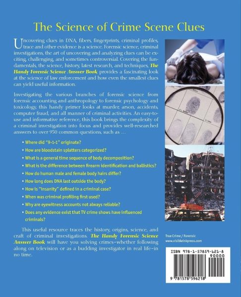 Covering the fundamentals, science, history, techniques, laboratory analysis, the latest research, and controversies, The Handy Forensic Science Answer Book: Reading Clues at the Crime Scene, Crime Lab and in Court.