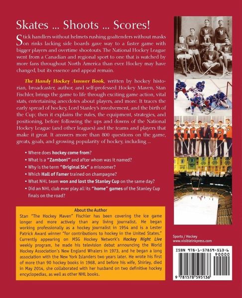 Stan Fischler, hockey journalist since 1954 and Lester Patrick Award-winner "for contributions to hockey in the United States," covers the sport's history, its origins, rules, players, and more! Stick handlers without helmets rushing goaltenders without masks on rinks lacking sideboards gives way to a faster game with bigger players and overtime shootouts. The National Hockey League goes from a Canadian and regional sport to one that is watched by more fans throughout North America than ever. Hockey may have changed, but its essence and appeal remain. The Handy Hockey Answer Book, written by hockey historian, broadcaster, author, and self-professed Hockey Maven, Stan Fischler, brings the game to life through exciting game action, vital stats, players, rules, and more. It traces the early spread of hockey, Lord Stanley's involvement, and the birth of the cup, then explains the rules, the equipment, strategies, and positioning, before following the ups and downs of the National Hockey League and its teams and players. From the traditions, all-time cup- and award-winners and record-breakers to the modern game, The Handy Hockey Answer Book answers more than 800 questions on the game, greats, goals, and growing popularity of hockey, including ... 1. Where does hockey come from? 2. What was the Stanley Cup first called? 3. Where did the name "Patrick Division" come from and why are the Patrick brothers important? 4. When was six-man hockey invented and who was its creator? 5. What is a "Zamboni" and after whom was it named? 6. What was the Gretzky Rule? 7. How did the hockey puck develop its present shape? 8. Which is the oldest current NHL team? 9. Why is the term "Original Six" a misnomer? 10. Which Hall of Famer trained on champagne? 11. Who holds the Montreal Canadien's franchise record for career goals? 12. Who centered Gordie Howe and Ted Lindsey on Detroit's legendary "Production Line." 13. Which team was the first to come back from being down 3-0 in a series. 14. Who played right wing on a line with Phil Esposito for the Bruins in the late 60s and 70s? 15. Who was the first European player to lead the league in scoring? 16. What NHL team won and lost the Stanley Cup on the same day? 17. Which hockey player was supposed to be "kidnapped" as part of a scheme to increase attendance at 18. New York Rangers games? 19. Did an NHL club ever play all its "home" games of the Stanley Cup finals on the road? Starting with a Middle Ages game resembling ice golf to the NHL's Original Six to the modern high school, college, and professional games, this is a clear, concise, and illuminating primer to the game of hockey! A glossary of terms and a bibliography for further reading round out this helpful primer on the sport.