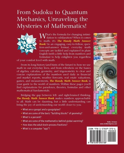 "From modern-day challenges such as balancing a checkbook, following the stock market, buying a home, and figuring out credit card finance charges to appreciating historical developments by Pythagoras, Archimedes, Newton, and other mathematicians, this ... resource addresses more than 1,000 questions related to mathematics. Organized into chapters that cluster similar topics ... this reference provides ... explanations about the fundamentals of algebra, calculus, geometry, trigonometry, and other branches"--