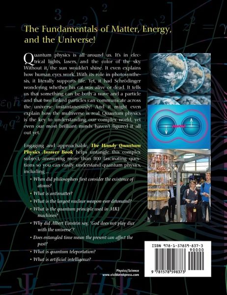 Quantum physics helps explain many mysteries of the universe. It underpins everything, but it need not be quantum difficult with this informative, accessible, easy-to-follow guide to the fundamentals and concepts of quantum physics and our quantum universe! Quantum physics is all around us. It's in electrical lights, lasers, and the color of the sky. Without it, the sun wouldn’t shine. It even explains how human eyes work. With its role in photosynthesis, it literally supports life. Yet, it had Schröouml;dinger wondering whether his cat was alive or dead. It tells us that something can be both a wave and a particle and that two linked particles can communicate across the universe instantaneously! And it might even explain how the multiverse is real. Quantum physics is the key to understanding our complex world, yet even our most brilliant minds haven’t figured it all out yet. Engaging and approachable, The Handy Quantum Physics Answer Book helps untangle this complex subject, making quantum physics and its impact on us, the world, and the universe entertaining and easy to grasp. From the basics to the theories and from the practical applications to the future, this illuminating book answers more than 800 fascinating questions so you can easily understand quantum physics, including ... Did the Big Bang arise from quantum foam? When did philosophers first consider the existence of atoms? What is the largest nuclear weapon ever detonated? What are quarks? What is quantum teleportation? What is the Heisenberg Uncertainty Principle? What is the quantum principle used in MRI machines? Does entangled time mean the present can affect the past? Why did Albert Einstein say, "God does not play dice with the universe"? How is a black hole a quantum object? How does quantum physics appear in portrayals of space? Do we live in a multiverse? What is artificial intelligence? Are human brains actually quantum computers? How does quantum physics affect me? The Handy Quantum Physics Answer Book provides a bridge between scientific concepts and everyday understanding, allowing you to grasp the wonders and implications of quantum physics. This compelling resource is for the casually curious as well as those seeking a deeper understanding of one of the most captivating scientific fields of our time. With 135 photos and graphics, this tome is richly illustrated. Its glossary of commonly used terms cuts through the jargon, a helpful bibliography provides sources for further exploration, and an extensive index adds to its usefulness.