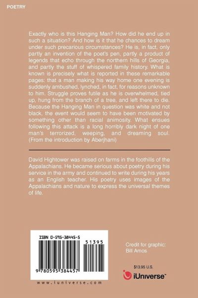 Exactly who is this Hanging Man? How did he end up in such a situation? And how is it that he chances to dream under such precarious circumstances? He is, in fact, only partly an invention of the poet's pen, partly a product of legends that echo through the northern hills of Georgia, and partly the stuff of whispered family history. What is known is precisely what is reported in these remarkable pages: that a man making his way home one evening is suddenly ambushed, lynched, in fact, for reasons unknown to him. Struggle proves futile as he is overwhelmed, tied up, hung from the branch of a tree, and left there to die. Because the Hanging Man in question was white and not black, the event would seem to have been motivated by something other than racial animosity. What ensues following this attack is a long horribly dark night of one man's terrorized, weeping, and dreaming soul. (From the introduction by Aberjhani)