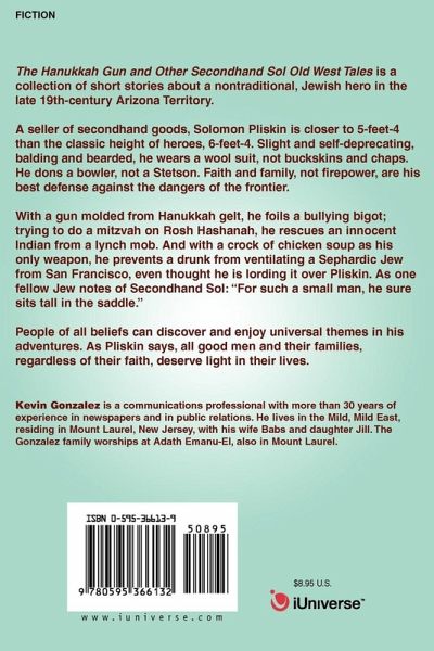 The Hanukkah Gun and Other Secondhand Sol Old West Tales is a collection of short stories about a nontraditional, Jewish hero in the late 19th-century Arizona Territory. A seller of secondhand goods, Solomon Pliskin is closer to 5-feet-4 than the classic height of heroes, 6-feet-4. Slight and self-deprecating, balding and bearded, he wears a wool suit, not buckskins and chaps. He dons a bowler, not a Stetson. Faith and family, not firepower, are his best defense against the dangers of the frontier. With a gun molded from Hanukkah gelt, he foils a bullying bigot; trying to do a mitzvah on Rosh Hashanah, he rescues an innocent Indian from a lynch mob. And with a crock of chicken soup as his only weapon, he prevents a drunk from ventilating a Sephardic Jew from San Francisco, even thought he is lording it over Pliskin. As one fellow Jew notes of Secondhand Sol: 'For such a small man, he sure sits tall in the saddle." People of all beliefs can discover and enjoy universal themes in his adventures. As Pliskin says, all good men and their families, regardless of their faith, deserve light in their lives.