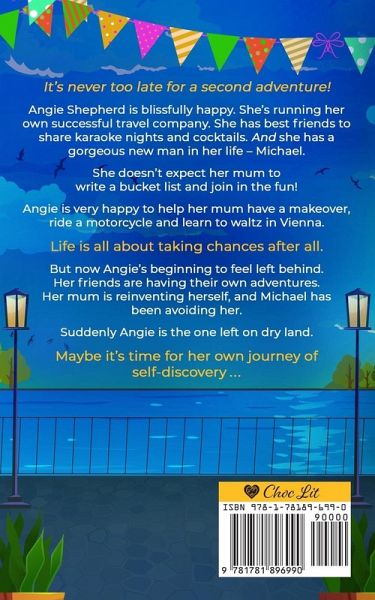 TRAVEL THE WORLD IN THIS LAUGH-OUT-LOUD SECOND CHANCE ROMCOM ABOUT STARTING AGAIN LATER IN LIFE. ________________________________________________ It's never too late for a second adventure! Angie Shepherd is blissfully happy. She's running her own successful travel company. She has best friends to share karaoke nights and cocktails. And she has a gorgeous new man in her life - Michael. What she doesn't expect is her mum to want to join in the fun. She's written a bucket list. And she wants Angie's help ticking it off! Angie is very happy to help her mum have a makeover, ride a motorcycle and learn to waltz in Vienna. Life is all about taking chances after all. But now Angie's beginning to feel left behind. Her friends are heading off on a cruise, or getting married. Her mum is reinventing herself, and Michael has been avoiding her. Suddenly Angie is the one left on dry land. Maybe it's time for her own journey of self-discovery . . . This laugh-out-loud feel-good romantic comedy of second chances is perfect for fans of Caroline James, Maddie Please, Jill Mansell, Shari Low, Judy Leigh and Jennifer Bohnet.