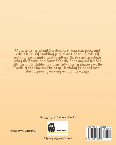 Mina longs for colour! She dreams magenta pinks and cobalt blues. Of sparkling purples and dazzling reds. Of soothing greens and dazzling yellows. So she sets about creating colours using the leaves and roots that she find around her.