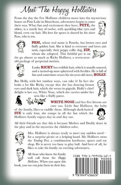 The Happy Hollisters by Jerry West was actually written by Andrew E. Svenson, a prolific yet somewhat anonymous, writer of books for children. Jerry West was the pen name Svenson used when he started writing The Happy Hollisters for the Stratemeyer Syndicate. The Stratemeyer Syndicate was a book packager, well-known for its development of children's book series including Tom Swift, The Bobbsey Twins, The Hardy Boys, and Nancy Drew. Many of these series were intended to have long publishing lives, and were written by multiple authors using the same pseudonym. The Happy Hollisters, however, were all written by Andrew Svenson, whose identity as Jerry West was kept secret until several years after his death in 1975. Andrew Svenson was born in Belleville, NJ, in 1910, and his interest in writing started early. He was editor of his high school newspaper and yearbook at Barringer High School in Newark, and then went on to study Creative Writing at the University of Pittsburgh. After his graduation in 1932, he worked as a reporter and editor for the Newark Star Eagle and the Newark Evening News. He also taught creative writing courses at Rutgers University and Upsala College. Andrew Svenson was encouraged by his friend Howard Garis (author of Uncle Wiggily) to try his hand at juvenile fiction. He joined the Stratemeyer Syndicate as a writer in 1948, where he contributed to established series as Franklin W. Dixon (The Hardy Boys) and as Laura Lee Hope (The Bobbsey Twins). The first volume in his own original series, The Happy Hollisters, was published in 1953 by Doubleday & Company, and he was made a partner in the Stratemeyer Syndicate in 1961. As he wrote and developed 33 titles in The Happy Hollisters, he was also creating additional series for children under other pen names: Bret King by Dan Scott and The Tollivers by Alan Stone, one of the first series written about and for African-American children. Under various pseudonyms, Andrew Svenson wrote more than 80 adventure and mystery novels for children, which were published in 17 languages and sold millions of copies. The Hollister family was modeled on his own family and he often used actual Svenson family events and travels as the foundation for The Happy Hollisters books. He also kept copious newspaper clippings for story ideas, and interviewed hundreds of school children and teachers for additional suggestions. These ideas were then worked into his storylines, adding an educational element that was appreciated by parents and educators alike. The children loved the stories for their elements of danger and excitement geared to their comprehension level. After his death in 1975, the Stratemeyer Syndicate assigned all rights to The Happy Hollisters to his widow, Marian Svenson; they subsequently became the property of The Hollister Family Properties Trust. The current publication was initiated by Andrew E. Svenson III, grandson of the author, on behalf of The Hollister Family Properties Trust.