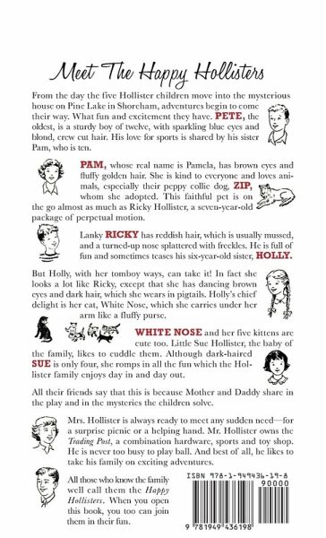 The Happy Hollisters by Jerry West was actually written by Andrew E. Svenson, a prolific yet somewhat anonymous, writer of books for children. Jerry West was the pen name Svenson used when he started writing The Happy Hollisters for the Stratemeyer Syndicate. The Stratemeyer Syndicate was a book packager, well-known for its development of children's book series including Tom Swift, The Bobbsey Twins, The Hardy Boys, and Nancy Drew. Many of these series were intended to have long publishing lives, and were written by multiple authors using the same pseudonym. The Happy Hollisters, however, were all written by Andrew Svenson, whose identity as Jerry West was kept secret until several years after his death in 1975. Andrew Svenson was born in Belleville, NJ, in 1910, and his interest in writing started early. He was editor of his high school newspaper and yearbook at Barringer High School in Newark, and then went on to study Creative Writing at the University of Pittsburgh. After his graduation in 1932, he worked as a reporter and editor for the Newark Star Eagle and the Newark Evening News. He also taught creative writing courses at Rutgers University and Upsala College. Andrew Svenson was encouraged by his friend Howard Garis (author of Uncle Wiggily) to try his hand at juvenile fiction. He joined the Stratemeyer Syndicate as a writer in 1948, where he contributed to established series as Franklin W. Dixon (The Hardy Boys) and as Laura Lee Hope (The Bobbsey Twins). The first volume in his own original series, The Happy Hollisters, was published in 1953 by Doubleday & Company, and he was made a partner in the Stratemeyer Syndicate in 1961. As he wrote and developed 33 titles in The Happy Hollisters, he was also creating additional series for children under other pen names: Bret King by Dan Scott and The Tollivers by Alan Stone, one of the first series written about and for African-American children. Under various pseudonyms, Andrew Svenson wrote more than 80 adventure and mystery novels for children, which were published in 17 languages and sold millions of copies. The Hollister family was modeled on his own family and he often used actual Svenson family events and travels as the foundation for The Happy Hollisters books. He also kept copious newspaper clippings for story ideas, and interviewed hundreds of school children and teachers for additional suggestions. These ideas were then worked into his storylines, adding an educational element that was appreciated by parents and educators alike. The children loved the stories for their elements of danger and excitement geared to their comprehension level. After his death in 1975, the Stratemeyer Syndicate assigned all rights to The Happy Hollisters to his widow, Marian Svenson; they subsequently became the property of The Hollister Family Properties Trust. The current publication was initiated by Andrew E. Svenson III, grandson of the author, on behalf of The Hollister Family Properties Trust.