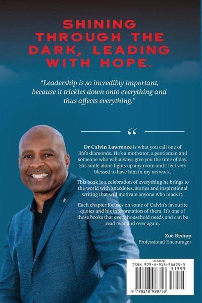 Each chapter focuses on some of the author's favorite quotes and lessons learned throughout life, first as a child, then a student, and finally as an adult professional. There are themes that touch on leadership. mentorship, motivation, courage, inspiration, perseverance and hard work, and dedication. It's one of those books that can be read by any household member, business professional, education or sports team member, and of course all leaders. And there are foundational lessons that anyone can learn from.