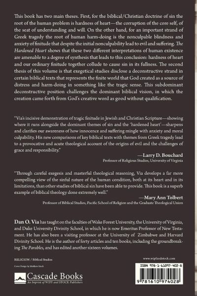 This book has two main theses. First, for the biblical/Christian doctrine of sin the root of the human problem is hardness of heart--the corruption of the core self, of the seat of understanding and will. On the other hand, for an important strand of Greek tragedy the root of human harm-doing is the nonculpable blindness and anxiety of finitude that despite the initial nonculpability lead to evil and suffering. The Hardened Heart shows that these two different interpretations of human existence are amenable to a degree of synthesis that leads to this conclusion: hardness of heart and our ordinary finitude together collude to cause sin in its fullness.The second thesis of this volume is that exegetical studies disclose a deconstructive strand in certain biblical texts that represents the finite world that God created as a source of distress and harm-doing in something like the tragic sense. This subdominant deconstructive position challenges the dominant biblical vision, in which the creation came forth from God's creative word as good without qualification.