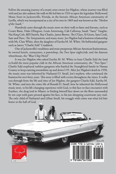 Follow the amazing journey of a music store owner Joe Higdon, whose journey was filled with and joy also sadness; his walk in life led him in 1924 to open the legendary Hollywood Music Store in Jacksonville, Florida, in the historic African American community of Lavilla, which was incorporated as a city of its own in 1869 and was known as the "Harlem of the South." Hundreds came through the music store on their walk to fame and fortune, such as Count Basie, Duke Ellington, Louis Armstrong, Cab Calloway, Sarah "Sassy" Vaughn, Nat King Cole, Bill Daniels, Ray Charles, James Brown, The O'Jays, Al Green, Sam Cook, Sam and Dave, The Temptations, and many more. Joe Higdon had a business relationship with Ms. Clare White, then the daughter of Eartha M. M. White. He befriended gangster such as James "Charlie Edd" Craddock. One of Jacksonville's wealthiest and most prosperous African American businessman, he owned hotels, restaurants, a pawnshop, the Two Spot nightclub, and the famous whorehouse, the "Blue Chip Hotel" It was Joe Higdon who asked Eartha M. M. White to lease Charlie Edd the land to build the most popular club in the African American community, the "Two Spot." Charlie Edd employed ruthless gangsters who battled the Youngblood family in Nassau County to keep running moonshine up and down I-95. After Joe Higdon's death in 1958, the music store was inherited by Nathaniel D. Small, Joe's nephew, who continued the business for over forty years. This story is filled with events throughout the times. It walks you through from the life and time of Joe Higdon, the gangster Charlie Edd, Eartha M. M. White, and into the crime life of Ronald D. Small, how he inherited the Hollywood music store, to his life-changing experience with God, to this face-to-face encounter with Scarface, the drug lord in Miami, to finding himself face down on the floor surrounded by ten cops with guns pressed against his face, to his jaw-dropping courtroom jury trail. The only child of Nathaniel and Lillian Small, his struggle with crime was what led him home to the hall of God.