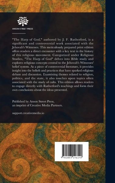"The Harp of God," authored by J. F. Rutherford, is a significant and controversial work associated with the Jehovah's Witnesses. This meticulously prepared print edition offers readers a direct encounter with a key text in the history of this religious movement. Categorized under Religious Studies, "The Harp of God" delves into Bible study and explores religious concepts central to the Jehovah's Witnesses' belief system. As a piece of controversial literature, it provides insight into the beliefs and practices that have sparked religious debate and discussion. Examining themes related to religion, politics, and the state, it also touches upon topics often associated with the study of cults. This edition allows readers to engage directly with Rutherford's teachings and form their own conclusions about the ideas presented. This work has been selected by scholars as being culturally important, and is part of the knowledge base of civilization as we know it. This work is in the public domain in the United States of America, and possibly other nations. Within the United States, you may freely copy and distribute this work, as no entity (individual or corporate) has a copyright on the body of the work. Scholars believe, and we concur, that this work is important enough to be preserved, reproduced, and made generally available to the public. We appreciate your support of the preservation process, and thank you for being an important part of keeping this knowledge alive and relevant.