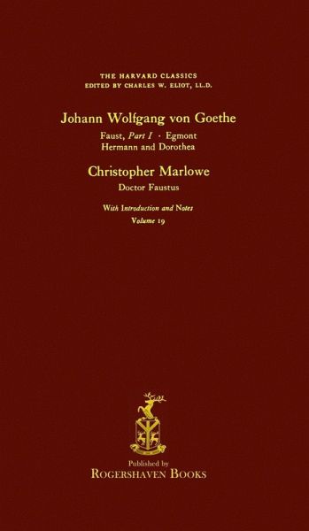This is a 100% accurate reproduction of Volume 19 of the landmark Harvard Classics series. This volume contains "Faust, part 1", "Egmont", and "Hermann and Dorothea", by Johann Wolfgang von Goethe; "Dr. Faustus", by Christopher Marlowe. The Harvard Classics went out of print more than fifty years ago. Here is your chance to own a brand new copy! The fifty-volume Harvard Classics series was first published in 1909 and 1910. It was compiled and edited by Harvard University president Charles Eliot, who had claimed that it was possible to fit on a five-foot shelf enough books to contain all the knowledge necessary for a well-rounded liberal arts education. As Eliot said, "a five-foot shelf would hold books enough to give in the course of years a good for substitute a liberal education in youth to any one who would read them with devotion, even if he could spare but ten minutes a day for reading." Eliot further explained that "the principal literatures represented in the collection are those of Greece, Rome, France, Italy, Spain, England, Scotland, Germany, and the United States; but important contributions have been drawn also from Chinese, Hindu, Hebrew, Arabian, Scandinavian, and Irish sources." It had "nothing less than the purpose to present so ample and characteristic a record of the stream of the world's thought that the observant reader's mind shall be enriched, refined, and fertilized by it." The series "provides the literary materials from which a careful reader might gain a fair view of the progress of man observing, recording, inventing, and imagining from the earliest historical times to the close of the nineteenth century" and provides "the means of obtaining such a knowledge of ancient and modern literature as seems essential to the twentieth century idea of a cultivated man." This Rogershaven Facsimile Edition is a faithful reproduction made from photographic scans of the pages of an authentic original edition. We have lovingly and carefully restored the text to ensure that this replica looks almost as good as a brand-new copy from 1909.