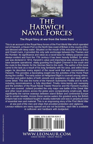 The Royal Navy at war from the home front This is an account of the Royal Navy forces of the First World War which operated out of Harwich, a Haven Port on the North Sea coast of Britain in the county of Essex blessed with deep water. Situated on the mouth of the estuaries of the Stour and Orwell rivers, it provided the only safe anchorage between the Thames and the Humber. Its significance and value as a naval base for military purposes was always evident and from the 17th century it has been heavily fortified. So when war was declared in 1914, Harwich's value and importance was obvious and the base became operational, vitally guarding the English Channel to the south and the route to the Atlantic for the German fleet to the north. The author of this book came to the task as a result of his long familiarity with the area, and within these pages he describes every aspect of the naval work that was concentrated on Harwich. This provides a fascinating insight into the activities of the Home Fleet during the conflict. The early action at Heligoland Bight is covered among others. Convoys and patrol duties of both vessels and seaplanes are also dealt with in some detail. This was the home of the Harwich Submarine Flotilla and its work, including reconnaissance, is fully described. Finally mine-laying and sweeping and the activities of the Royal Naval Trawler Reserve and the Harwich Auxiliary force are covered. Jutland provided the only major sea battle of the Great War and other naval actions across the globe were comparatively small-scale. Most significantly the narrow seaways between island Britain and continental Europe had to remain tenable. Across these narrow waters the greatest army the British Empire had ever mobilised fought in deadly stalemate and was in perpetual need of essential men and material. This is an engrossing story of the First World War at sea and of the men and ships that provided protection and vigilance. Leonaur editions are newly typeset and are not facsimiles; each title is available in softcover and hardback with dustjacket.