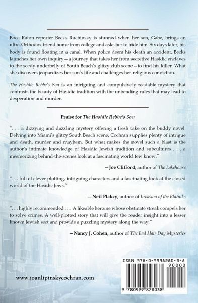 The murder of an ultra-religious student seeking refuge in her home forces an investigative reporter to explore the seedy underside of South Beach's glitzy nightclub scene and the insular world of Hasidic Judaism to find his killer. Boca Raton reporter Becks Ruchinsky is surprised when her son, Gabe, brings a frightened young man home from college and asks her to hide him. Menachem left his Hasidic community under mysterious circumstances and fears being kidnapped. Grateful to the young man for befriending her son, whose Asperger's makes friendships difficult, Becks takes in the boy. Six days later, he's found floating in a canal. Police insist Menachem's drowning was an accident but Becks isn't buying. Her investigation takes her from the gritty underworld of South Beach to secretive Hasidic communities in Miami and New York. With the help of her ex-gangster father Tootsie and a nosy Hasidic shopkeeper, Becks discovers the leader of a cult-like religious community is subverting rabbinic law to conceal ugly truths. As she uncovers layer upon layer of lies and deceptions, Becks discovers her son's life may depend on her ability to unearth these secrets.