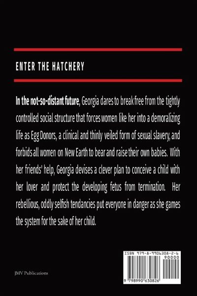 In the not-so-distant future, a select few survivors are tasked with colonizing and repopulating a new planetary home for humanity. They have learned from the selfish mistakes of past generations that rendered Earth no longer capable of sustaining life, and set to building a society on New Earth that is strictly dedicated to the collective good. The New Rules outlaw individual rights and independent action; the citizens of New Earth must accept their assigned roles without question or risk being identified as unfit and terminated. Strong women drive the action in this dystopian post-apocalypse thriller. Georgia, the main character who is a member of a government selected stable of beautiful genetic Exotics, dares to break free from the tightly controlled social structure that forces women like her into a demoralizing life as Egg Donors, a clinical and thinly veiled form of sexual slavery, and forbids all women on New Earth to bear and raise their own babies. With the help of her fellow Exotics, Georgia devises a clever plan to conceive a child with her lover and protect her developing fetus from termination as an unapproved pregnancy at the hands of the Reproduction Technicians who manage the Fetal Development Lab, otherwise known as The Hatchery. Her rebellious, oddly selfish maternal tendencies put Georgia and everyone around her in danger as she games the system for the sake of her child.