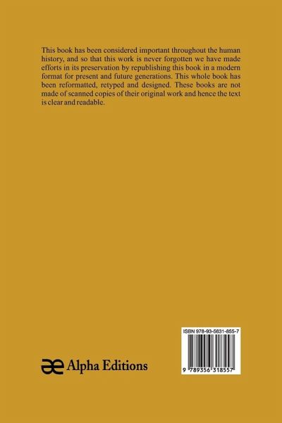 This book has been considered important throughout the human history, and so that this work is never forgotten we have made efforts in its preservation by republishing this book in a modern format for present and future generations. This whole book has been reformatted, retyped and designed. These books are not made of scanned copies and hence the text is clear and readable.