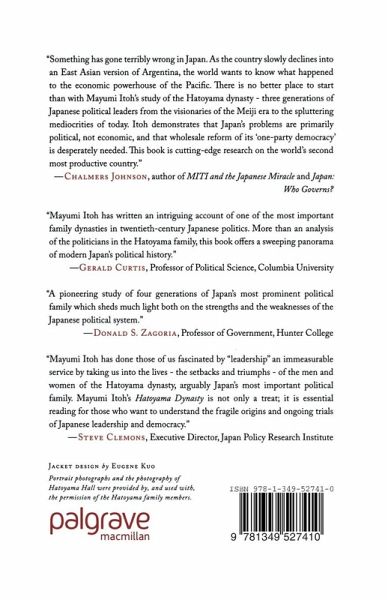This is a multi-generational political history of the Hatoyamas, a family that has participated at the highest levels of Japan's parliamentary government from its inception in the late 1800s. The Hatoyama family is one of the most prominent political families in modern Japanese government. It has produced six members of the Diet, Japan's parliament, many of whom have served as cabinet members and party leaders. Due to the family's political legacy, they have often been likened to the Kennedy family in American politics (though they have been spared the tragedy and scandal visited upon the Kennedys). Despite the significance of the Hatoyamas to modern Japanese politics, this is the first comprehensive study available in English. In tracing the rising political fortunes of this family, it is also possible to study the role of hereditary politicians in Japan, the growth and evolution of Japanese political parties, and, perhaps most importantly, the way political leadership functions in Japan, a society known more for consensus-building than strong leaders.