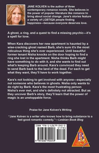 A ghost, a ring, and a quest to find a missing psychic--it's a spell for love. When Kara discovers her new apartment is haunted by a wise-cracking ghost named Barb, she's sure it's the most ridiculous thing she's ever experienced. Until beautiful former tenant Nisha knocks on the door hoping to find a ring she lost in the apartment. Nisha thinks Barb might have something to do with it, and she wants to find out what's keeping Barb around. Kara's convinced they need to send Barb back to the land of the dead. For each to get what they want, they'll have to work together. Kara's not looking to get involved with anyone--especially not someone who believes in ghosts. Nisha only wants to do right by Barb. Kara's the most frustrating person Nisha's ever met, and she's definitely not attracted. But as they uncover Barb's story, they'll learn that the power of magic is an unstoppable force.