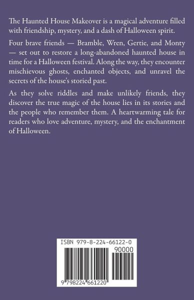 The Haunted House Makeover is a magical adventure filled with friendship, mystery, and a dash of Halloween spirit. Four brave friends - Bramble, Wren, Gertie, and Monty - set out to restore a long-abandoned haunted house in time for a Halloween festival. Along the way, they encounter mischievous ghosts, enchanted objects, and unravel the secrets of the house's storied past. As they solve riddles and make unlikely friends, they discover the true magic of the house lies in its stories and the people who remember them. A heartwarming tale for readers who love adventure, mystery, and the enchantment of Halloween.