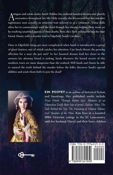 Antiques and estate dealer, Sarah Holden, has endured haunted dreams and ghostly encounters throughout her life. Only recently, she discovered that her macabre nightmares were actually an inherited trait referred to as a Dreamist. These skills allow her to communicate with the dead through her dreams, helping them move on by resolving unsettled aspects of their deaths. Now she's been enlisted to help her best friend, Danni, with a murder trial in Edgefield, South Carolina. Once in Edgefield, things get more complicated when Sarah is introduced to a group of ghost hunters, one of which catches her attention. Can Sarah thwart the growing affection for a man she just met? As her haunted dreams lead her closer to the answers her attorney friend is seeking, Sarah discovers the buried secrets of this southern town are more dangerous than she realized. Will Sarah and Danni be able to unravel the truth behind the murder before the killer discovers Sarah's special abilities and sends them both to join the dead? The Haunting of Edgefield Manor is the second in the Dreamist series. The first in the series, The Haunting of Monroe Manse, is available in print or on Kindle. Signed copies can be purchased at kimpoovey.com.