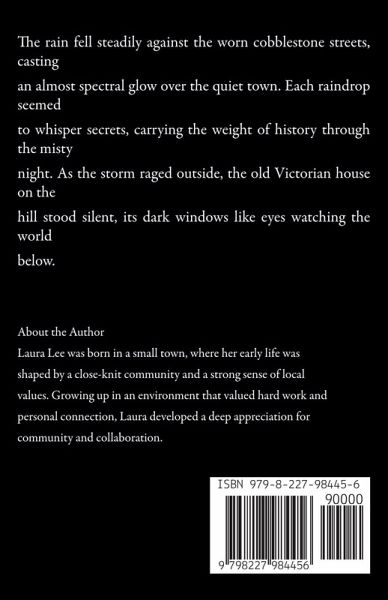The rain fell steadily against the worn cobblestone streets, casting an almost spectral glow over the quiet town. Each raindrop seemed to whisper secrets, carrying the weight of history through the misty night. As the storm raged outside, the old Victorian house on the hill stood silent, its dark windows like eyes watching the world below.