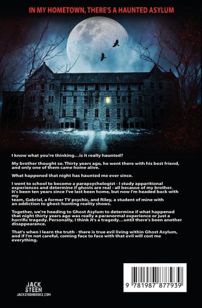 In my hometown, there's a haunted asylum. I know what you're thinking...is it really haunted? My brother thought so. Thirty years ago, he went there with his best friend, and only one of them came home alive. What happened that night has haunted me ever since. I went to school to become a parapsychologist - I study apparitional experiences and determine if ghosts are real - all because of my brother. It's been ten years since I've last been home, but now I'm headed back with my team, Gabriel, a former TV psychic, and Riley, a student of mine with an addiction to ghost-hunting reality shows. Together, we're heading to Ghost Asylum to determine if what happened that night thirty years ago was really a paranormal experience or just a horrific tragedy. Personally, I think it's a tragedy...until there's been another disappearance. That's when I learn the truth - there is true evil living within Ghost Asylum and if I'm not careful, coming face to face with that evil will cost me everything.