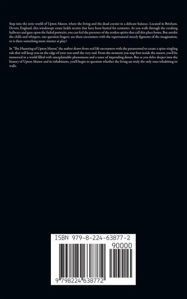 When acclaimed author Ben Sanders receives an invitation to stay at the infamous Upton Manor, he sees it as the perfect opportunity to find inspiration for his next novel. Little does he know, the shadows that lurk within its walls hold secrets far darker than he could have ever imagined. After a couple of days at the foreboding estate, he meets Annie, a captivating young woman. Drawn to her enigmatic charm, Ben soon discovers that Annie is no ordinary person. She is not the only mystery hidden within the manor's confines. Locked away in the depths of its labyrinthine corridors is the elusive Dr. Adrian Kendal, a man shrouded in rumours and whispered tales of madness. As Ben delves deeper into the secrets of Upton Manor, he finds himself entangled in a web of deceit, betrayal, and supernatural forces beyond his comprehension. With each twist and turn, he uncovers new revelations about the manor's dark history and the sinister Dr. Kendal. But just when Ben thinks he's uncovered the truth, he's faced with a shocking revelation that turns everything he thought he knew upside down. In a heart-pounding race against time, Ben must confront the ghosts of the past and unravel the mysteries of Upton Manor before it's too late. The Haunting of Upton Manor is a gripping tale of suspense, intrigue, and the blurred lines between the living and the dead. Prepare to be spellbound as Ben navigates the twists and turns of this chilling tale, culminating in a surprise ending that will leave you breathless.