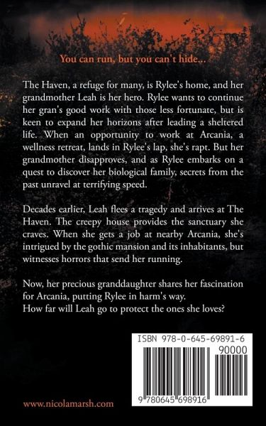You can run, but you can't hide... The Haven, a refuge for many, is Rylee's home, and her grandmother Leah is her hero. Rylee wants to continue her gran's good work with those less fortunate, but is keen to expand her horizons after leading a sheltered life. When an opportunity to work at Arcania, a wellness retreat, lands in Rylee's lap, she's rapt. But her grandmother disapproves, and as Rylee embarks on a quest to discover her biological family, secrets from the past unravel at terrifying speed. Decades earlier, Leah flees a tragedy and arrives at The Haven. The creepy house provides the sanctuary she craves. When she gets a job at nearby Arcania, she's intrigued by the gothic mansion and its inhabitants, but witnesses horrors that send her running. Now, her precious granddaughter shares her fascination for Arcania, putting Rylee in harm's way. How far will Leah go to protect the ones she loves?