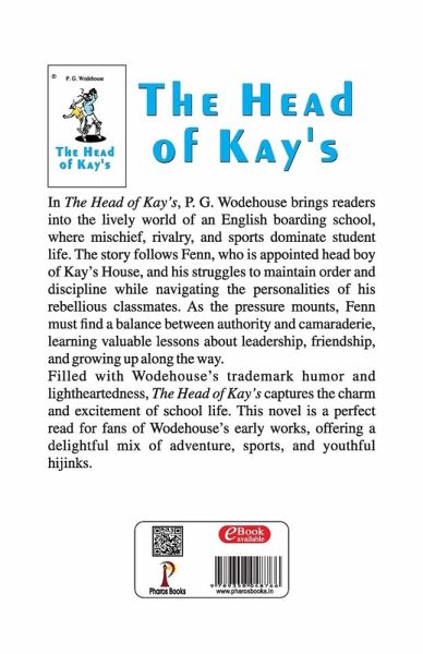 In The Head of Kay's, P. G. Wodehouse brings readers into the lively world of an English boarding school, where mischief, rivalry, and sports dominate student life. The story follows Fenn, who is appointed head boy of Kay's House, and his struggles to maintain order and discipline while navigating the personalities of his rebellious classmates. As the pressure mounts, Fenn must find a balance between authority and camaraderie, learning valuable lessons about leadership, friendship, and growing up along the way. Filled with Wodehouse's trademark humor and lightheartedness, The Head of Kay's captures the charm and excitement of school life. This novel is a perfect read for fans of Wodehouse's early works, offering a delightful mix of adventure, sports, and youthful hijinks.