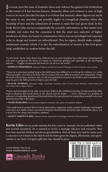 In recent years the issue of domestic abuse and violence has gained a lot of attention as the extent of it has become known. Domestic abuse and violence is now of high concern to most churches because it is evident that domestic abuse figures are much the same in our churches, and possibly higher in evangelical churches where the headship of men and the submission of women is made the God-given ideal. In this book, Kevin Giles surveys competently the scientific information on this matter now available and notes that the consensus is that the most sure indicator of higher incidences of abuse are found in communities where men are privileged and expected to be in charge and women are subordinated. This, he argues, should make complementarians consider afresh if in fact the subordination of women is the God-given ideal, established in creation before the fall.