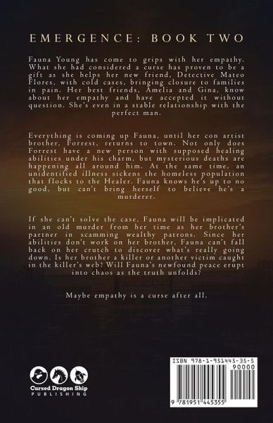 Fauna Young has come to grips with her empathy. What she had considered a curse has proven to be a gift as she helps her new friend, Detective Mateo Flores, with cold cases, bringing closure to families in pain. Her best friends, Amelia and Gina, know about her empathy and have accepted it without question. She's even in a stable relationship with the perfect man. Everything is coming up Fauna, until her con artist brother, Forrest, returns to town. Not only does Forrest have a new person with supposed healing abilities under his charm, but mysterious deaths are happening all around him. At the same time, an unidentified illness sickens the homeless population that flocks to the Healer. Fauna knows he's up to no good, but can't bring herself to believe he's a murderer. If she can't solve the case, Fauna will be implicated in an old murder from her time as her brother's partner in scamming wealthy patrons. Since her abilities don't work on her brother, Fauna can't fall back on her crutch to discover what's really going down. Is her brother a killer or another victim caught in the killer's web? Will Fauna's newfound peace erupt into chaos as the truth unfolds? Maybe empathy is a curse after all.