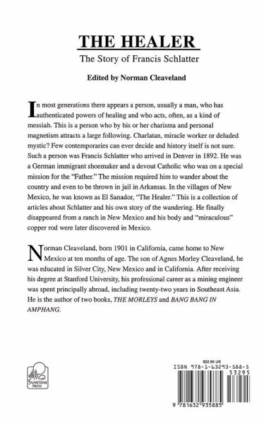 In most generations there appears a person, usually a man, who has authenticated powers of healing and who acts, often, as a kind of messiah. This is a person who by his or her charisma and personal magnetism attracts a large following. Charlatan, miracle worker or deluded mystic? Few contemporaries can ever decide and history itself is not sure. Such a person was Francis Schlatter who arrived in Denver in 1892. He was a German immigrant shoemaker and a devout Catholic who was on a special mission for the "Father." The mission required him to wander about the country and even to be thrown in jail in Arkansas. In the villages of New Mexico, he was known as El Sanador, "The Healer." This is a collection of articles about Schlatter and his own story of the wandering. He finally disappeared from a ranch in New Mexico and his body and "miraculous" copper rod were later discovered in Mexico.